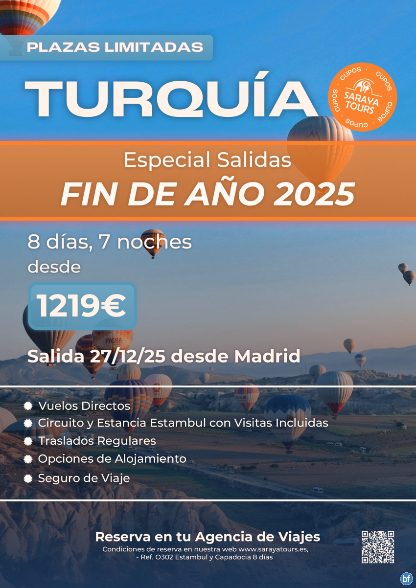 Especial Salidas Fin de año 2025 TURQUÍA 8 días. Vuelos directos. Salida 27/12/25.