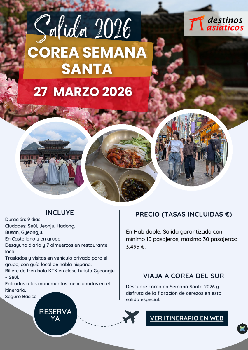 COREA Salida Especial Semana Santa. 9 días. Precio 3.495 € incluidas tasas