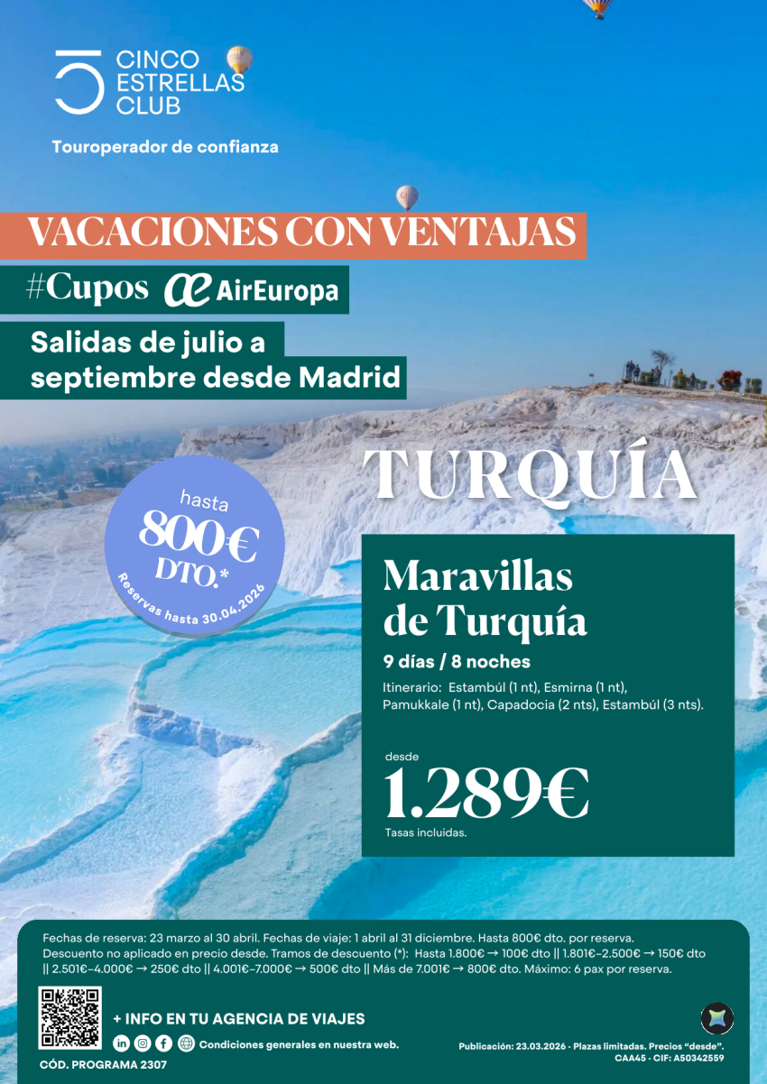 Hasta 800€ dto reserv. hsta 30.04 Cupos| Maravillas de Turquía 9d/8n dsd 1.289€ sal de julio a sept. dsd Mad